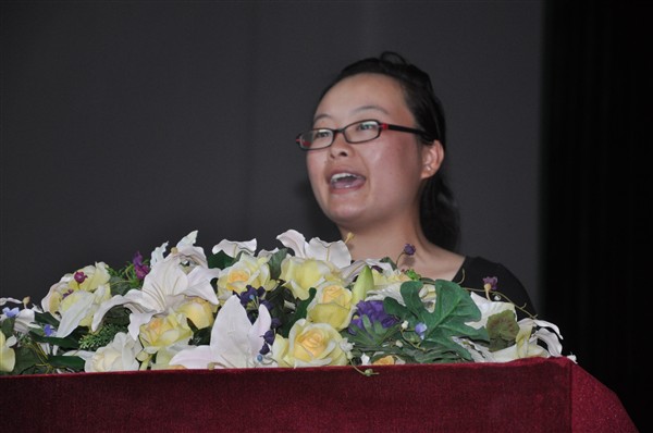 教师代表王珍老师代表全体老师欢迎2010级新生