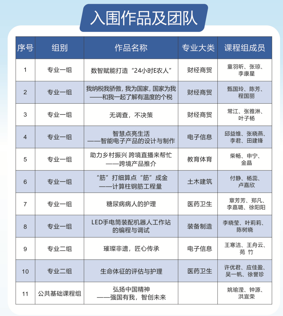 接下来,学校将精选优秀团队,继续深度挖掘、凝练特色、打磨推敲作品,邀请校内外专家培训指导,强化参赛教师的专业水准与创新素养,充分备战今年的浙江省高职院校教学能力比赛,争取再创佳绩。