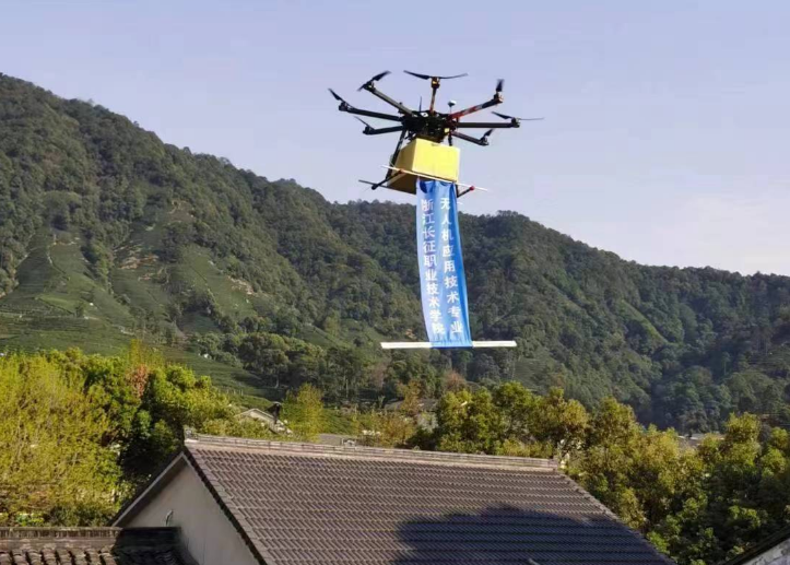 学校无人机应用技术专业赴梅家坞茶场开展空中智慧物流实践教学