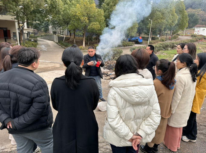 任课教师是课堂消防第一责任人,为进一步强化他们的安全意识和应对火灾等突发事件的防范能力,管理学院院长潘雅辉带领全体专任教师进行了消防培训与演练。管理学院邀请学校保卫处郭志成老师现场演练了灭火器材的使用操作方法,讲解了火灾预防、火灾自救及应急逃生等消防安全知识。活动上,老师们踊跃参与,按照‘一提、二拔、三瞄、四压’的口诀,现场进行手提式灭火器演练,进一步熟练掌握灭火器材的正确使用方法及操作要领,也锻炼了在危险情况下保持镇定的心理素质。