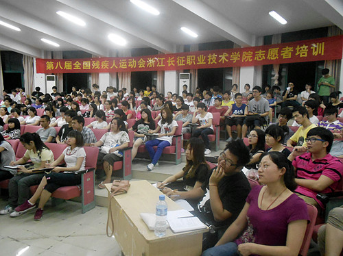 我院旨在通过培训建立一支业务能力强、综合素质高的志愿者队伍,让志愿者们在提高残运会服务期间帮助残疾人的能力同时,也让志愿者们都能有所收获,在实际生活懂得如何帮助他人。